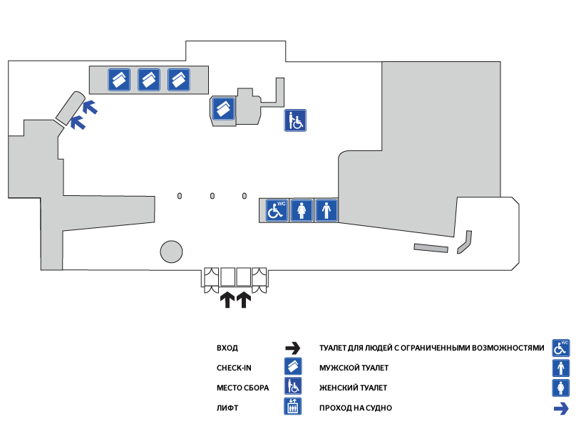Check-in открыт в соответствии с отправлением судов (билеты не продаются):