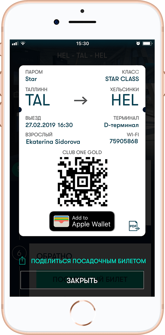 Если у вас нет мобильного приложения Tallink, вы можете предъявить посадочный талон на своем мобильном телефоне даже без доступа в интернет, открыв талон заранее в отдельном окне браузера или сделав снимок экрана с QR‑кодом талона.